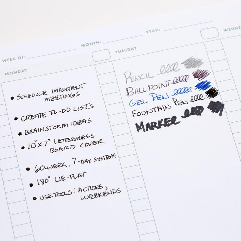Undated for Flexibility: With 60 weeks of planning, this notebook is perfect for anyone who needs flexibility. Start when you’re ready and skip weeks when you’re not using it without feeling guilty about wasted pages. This undated format puts you in control of your schedule.